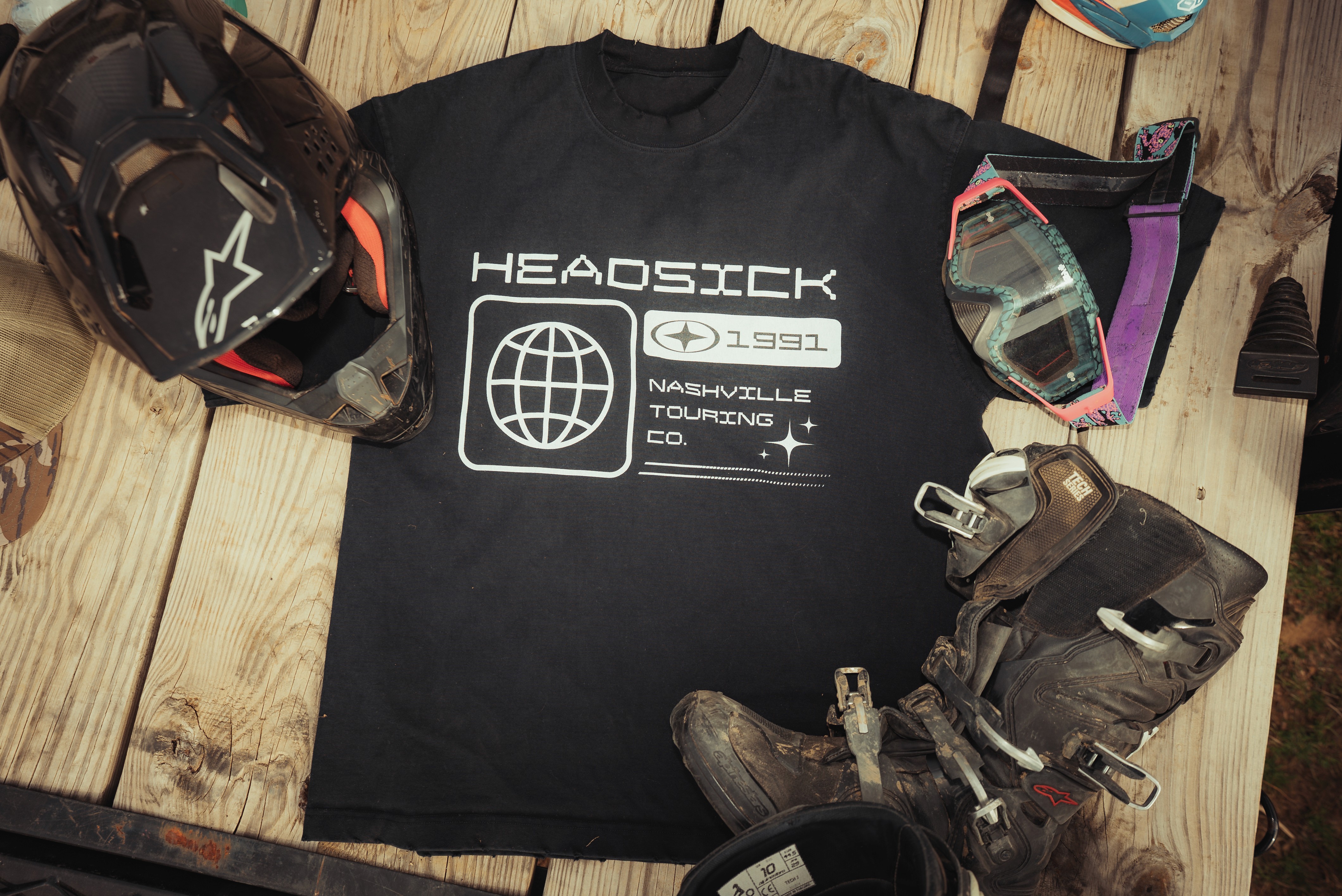 Headsick at a motocross track. This collection captures the energy, movement, and lifestyle of the brand in a dynamic, on-location setting.